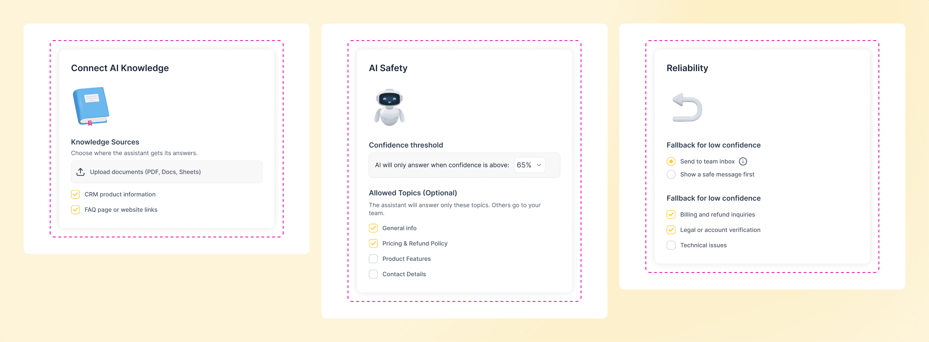 This ensures conversations feel flexible for users, while remaining controlled and intentional for teams.